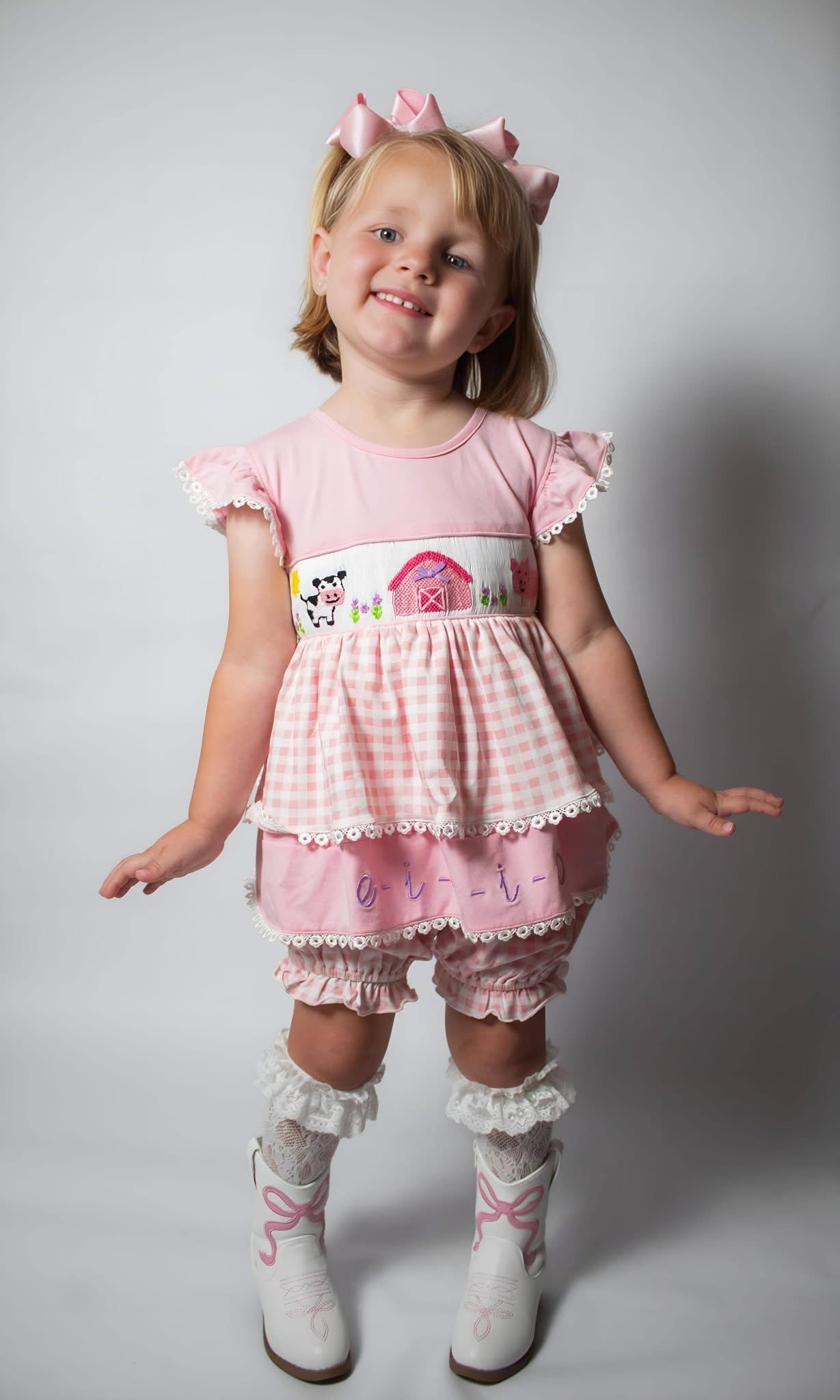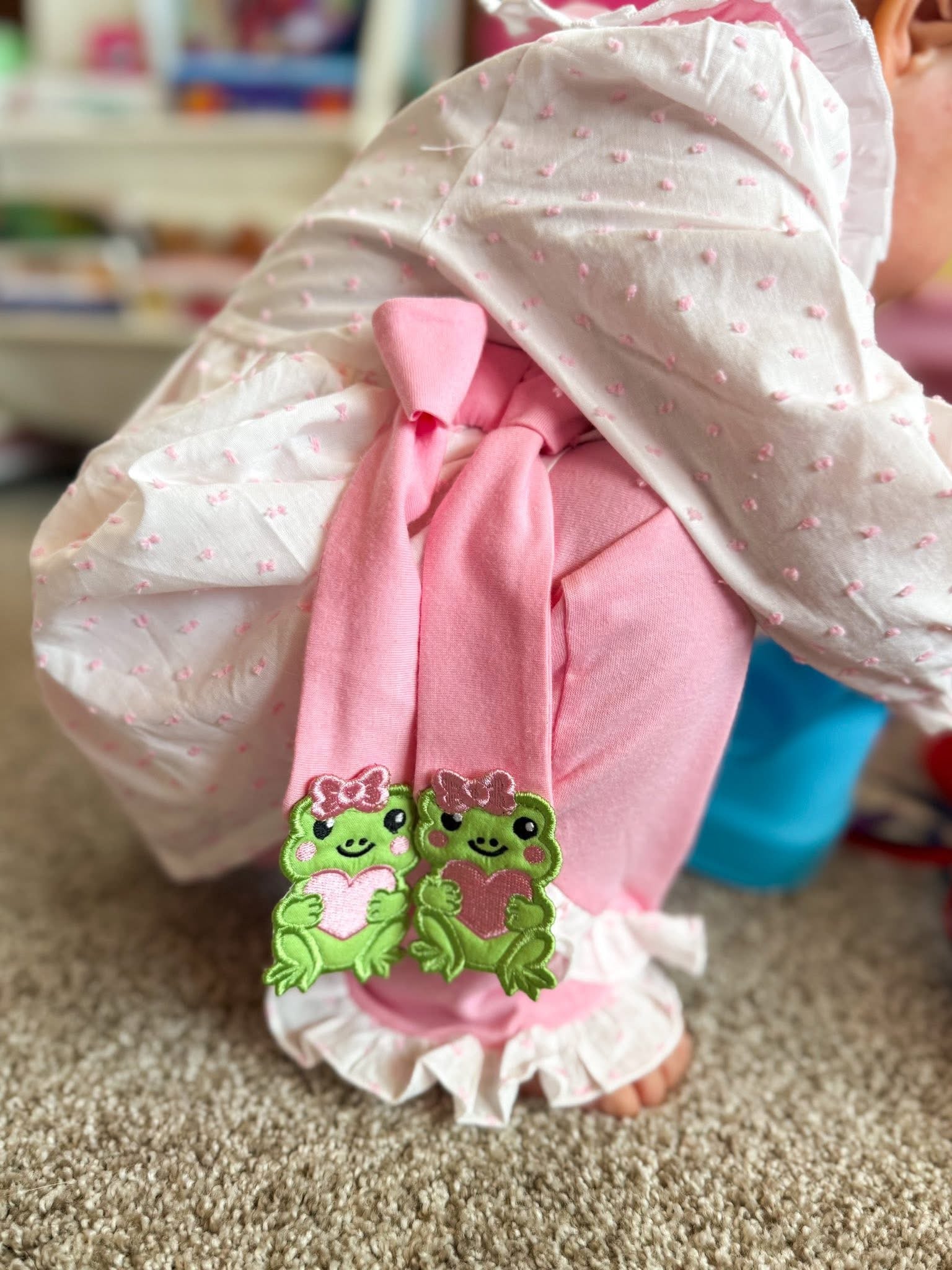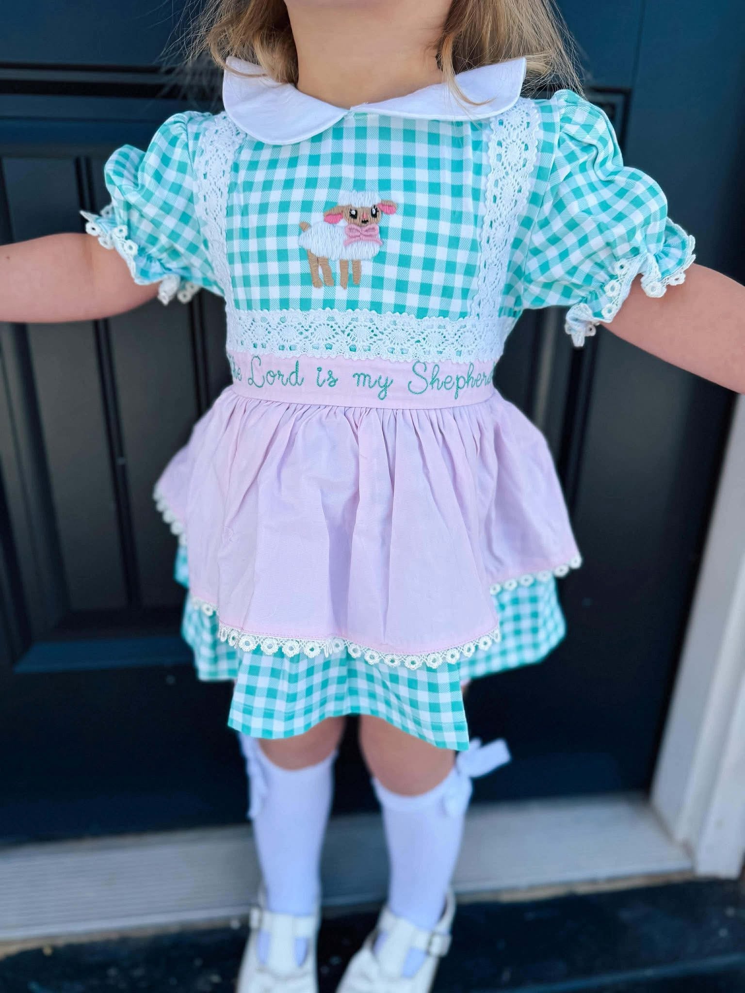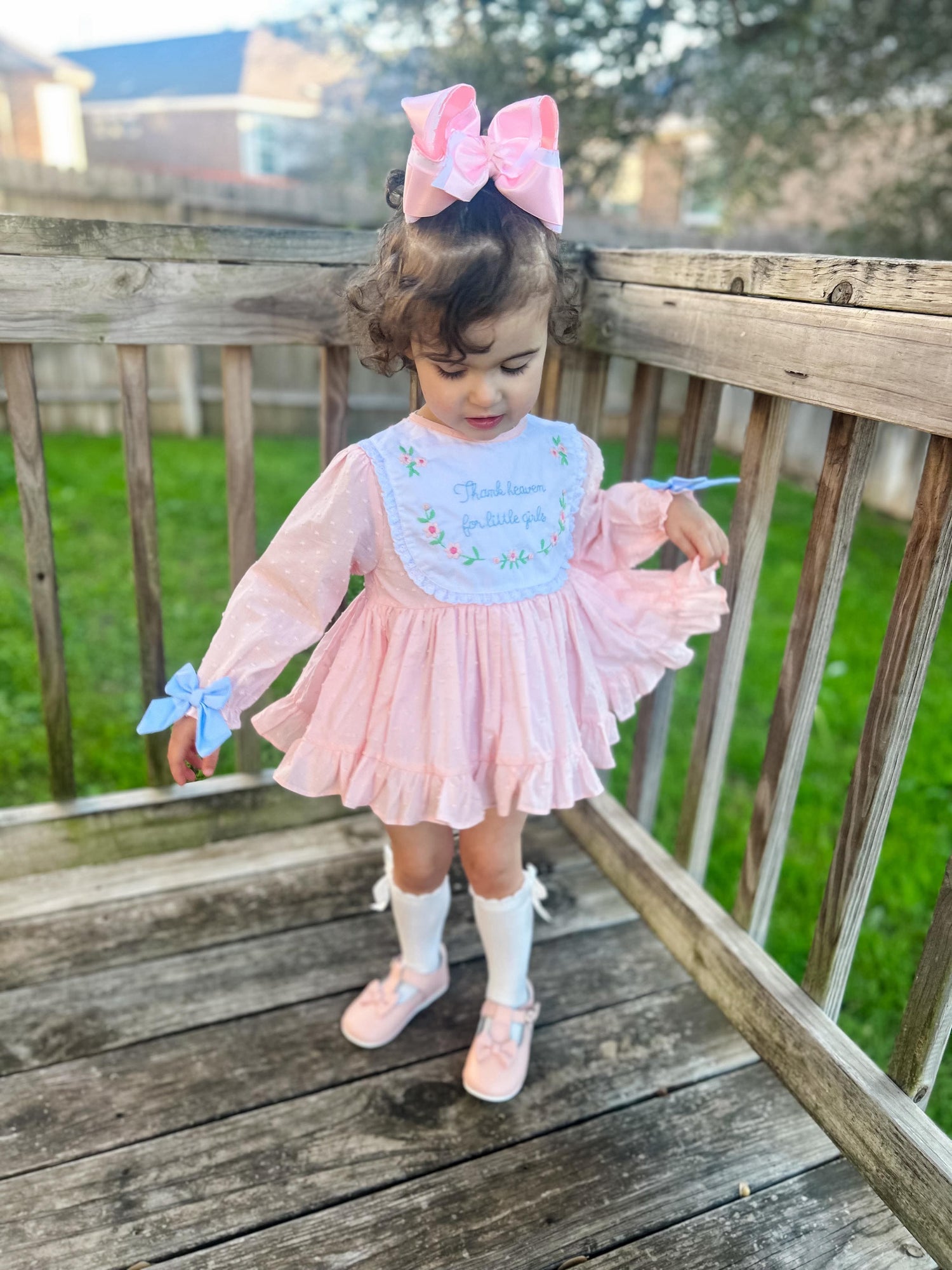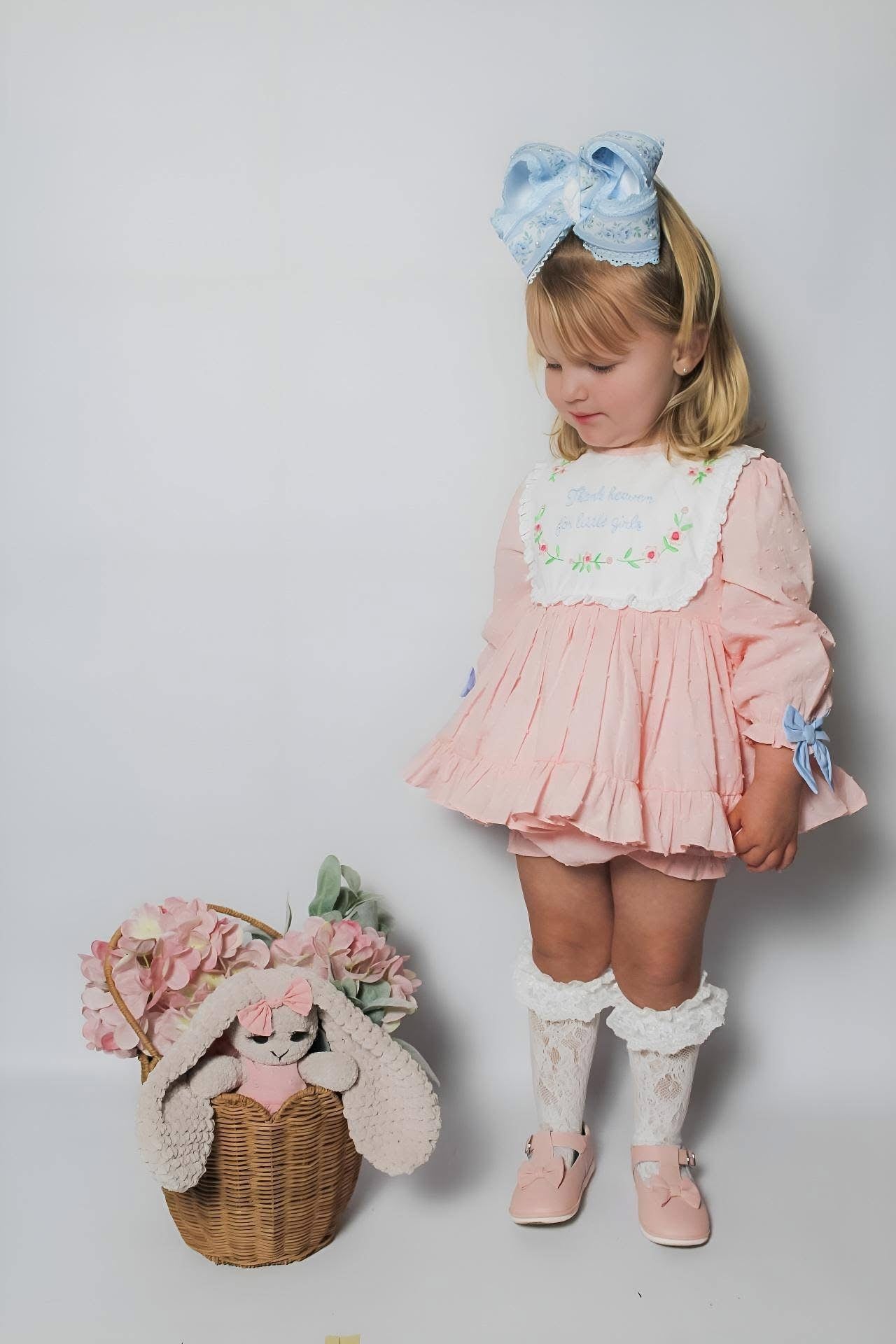 A sweet heirloom-style design, featuring delicate hand embroidery with the phrase “Thank Heaven for Little Girls.” Soft, timeless, and perfect for special moments 🤍✨