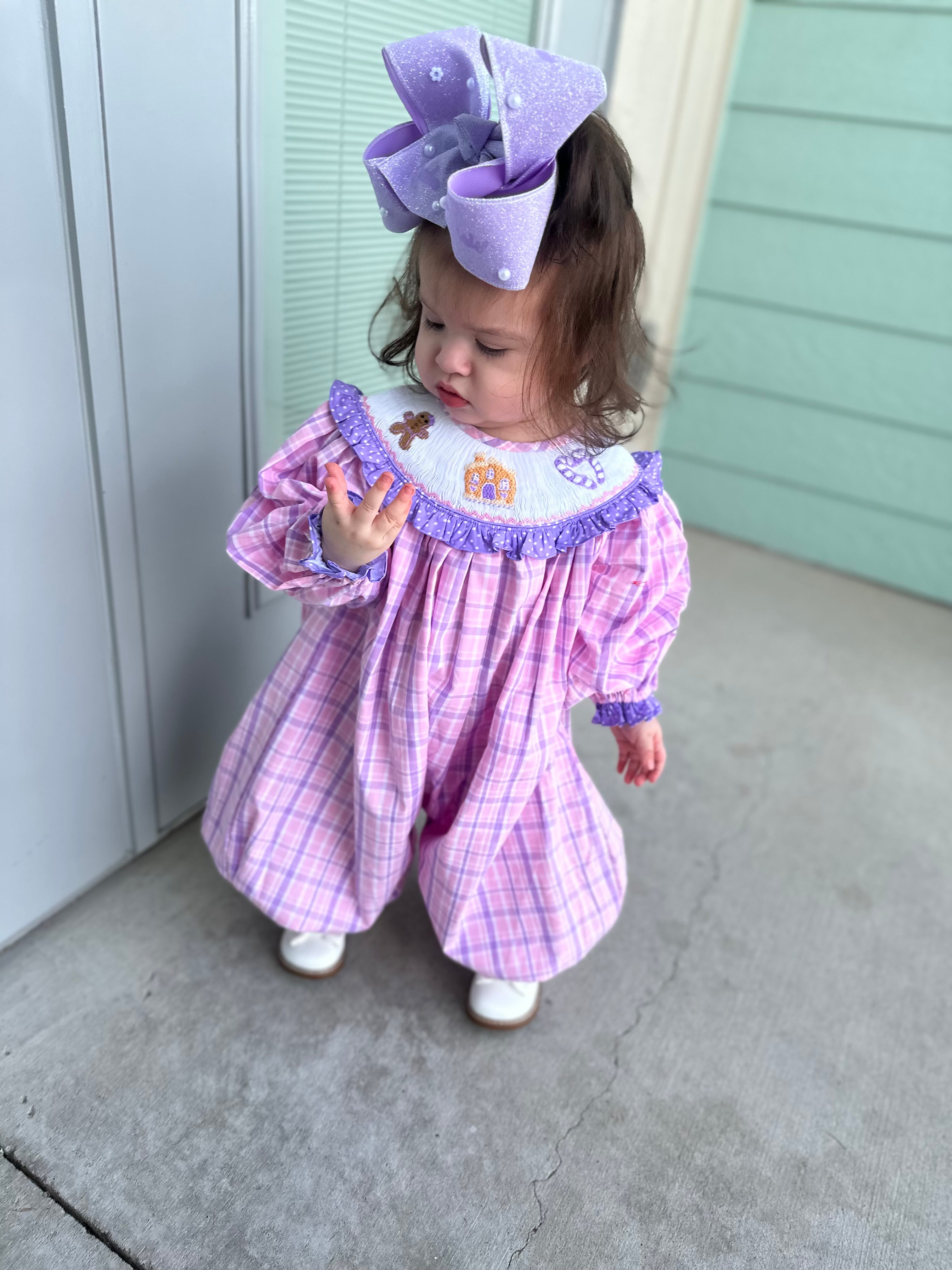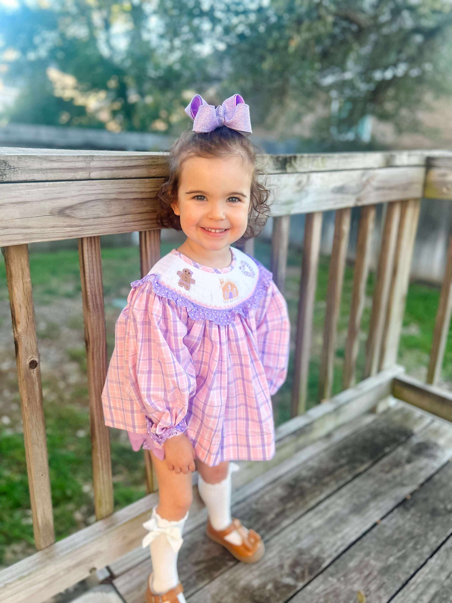 This precious smocked design features soft pastels, classic plaid, and dainty gingerbread details. Made for cozy memories and Christmas magic. ✨